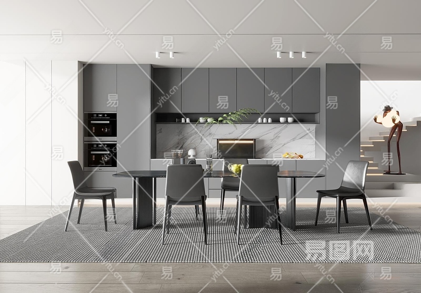 现代餐厅3D模型下载