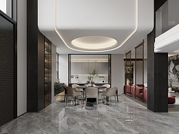 现代别墅餐厅3D模型下载