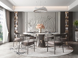 新中式家居餐厅3D模型下载