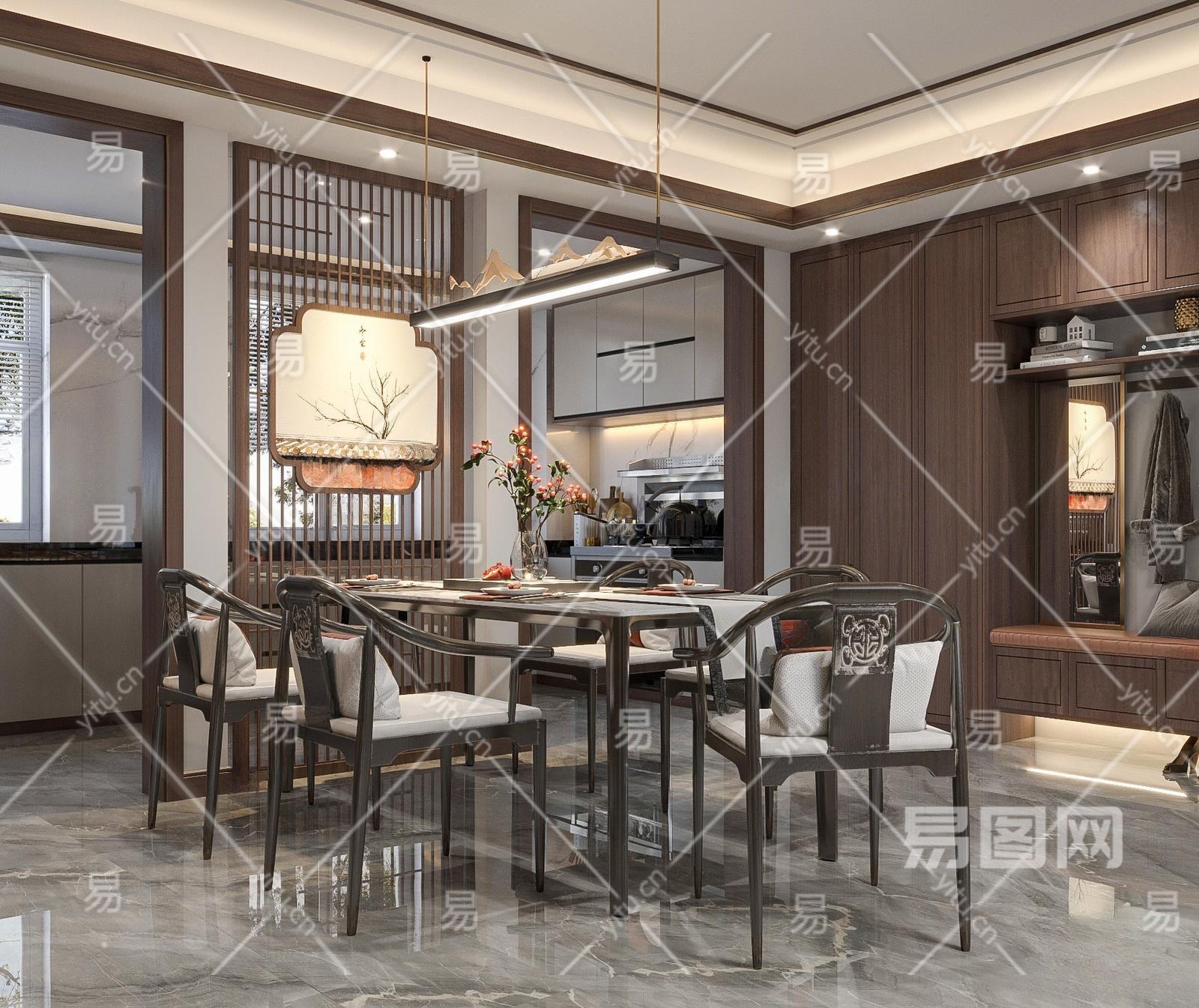 当前的位置:首页 > 3D模型 > 家装空间 > 餐厅 > 新中式家居餐厅3D模型下载
