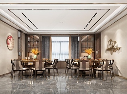 新中式家居餐厅3D模型下载