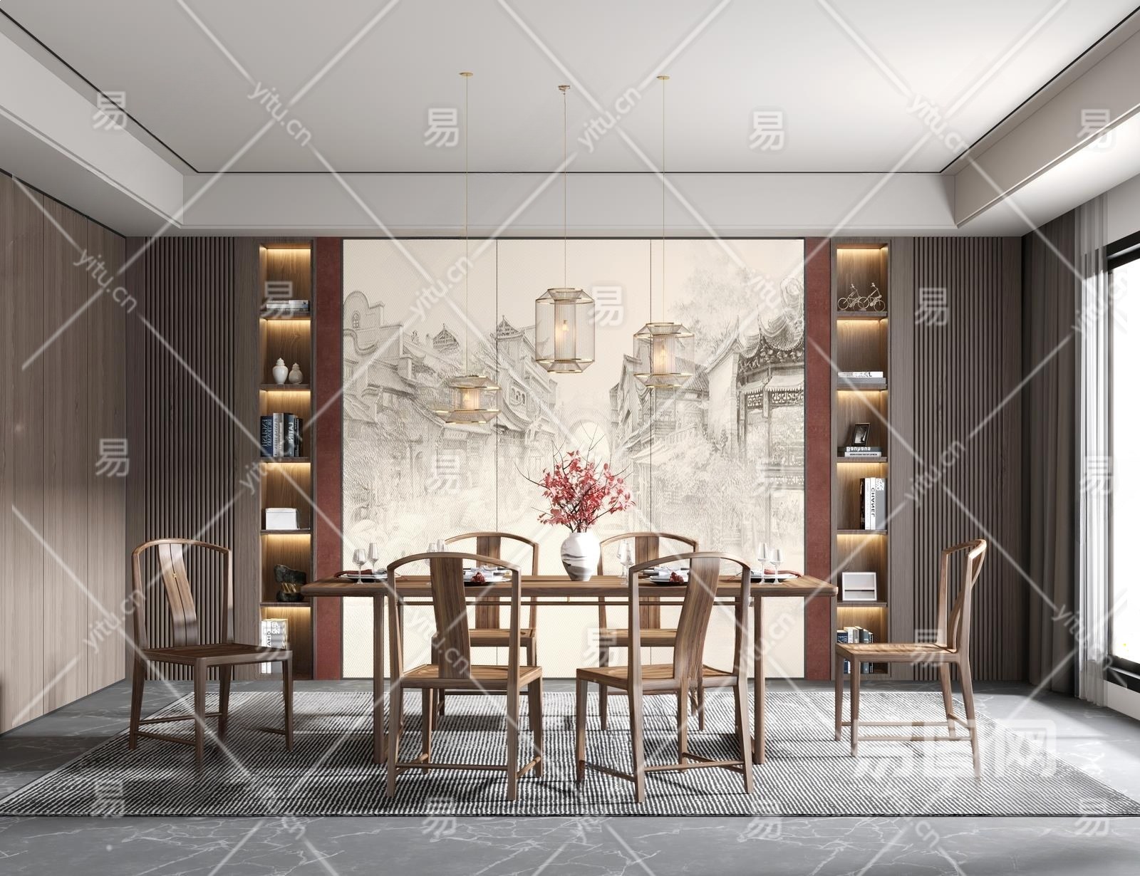 当前的位置:首页 > 3D模型 > 家装空间 > 餐厅 > 新中式家居餐厅3D模型下载