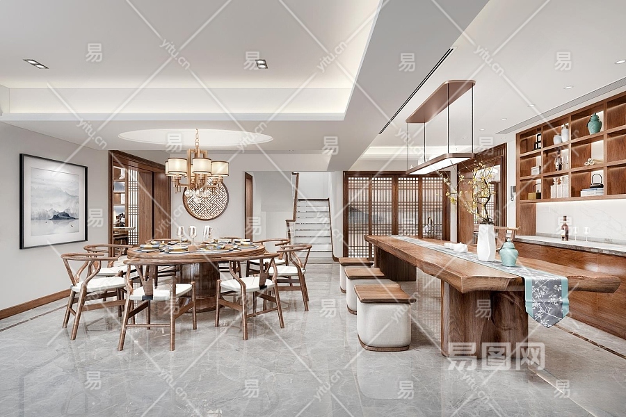 当前的位置:首页 > 3D模型 > 家装空间 > 餐厅 > 中式别墅餐厅3D模型下载