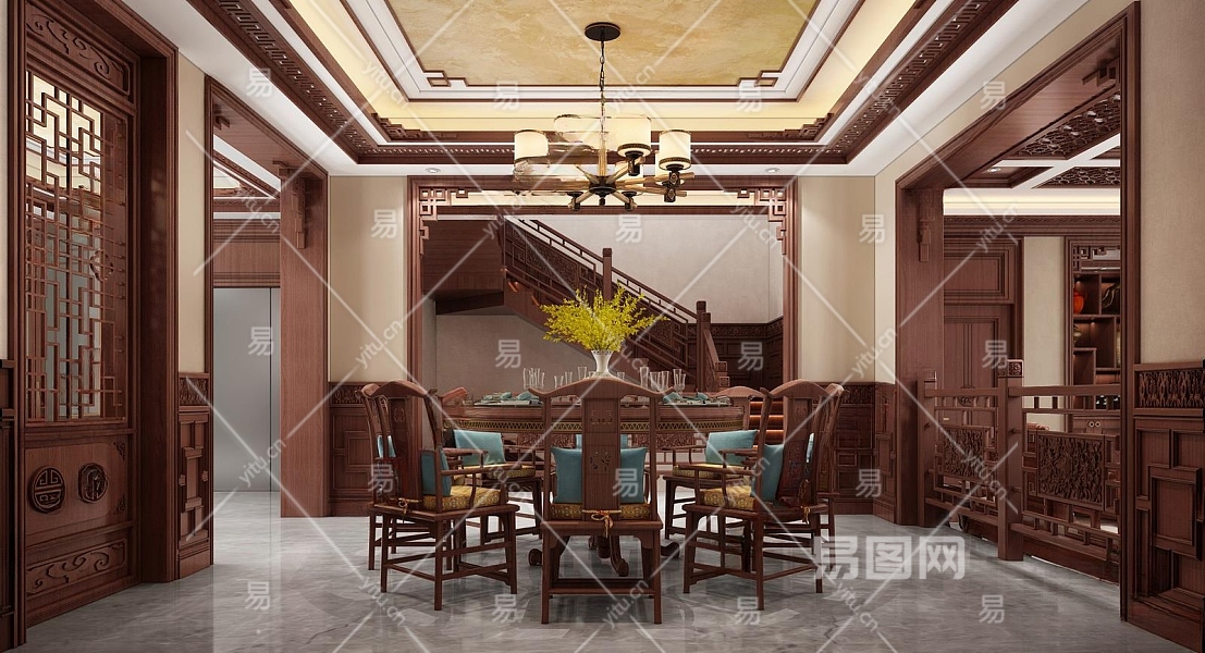 当前的位置:首页 > 3D模型 > 家装空间 > 餐厅 > 中式别墅餐厅3D模型下载