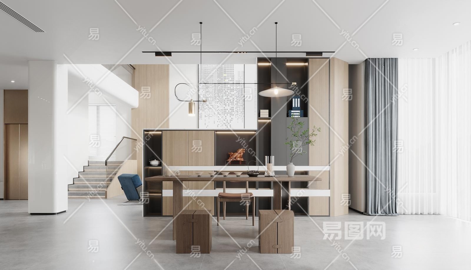 现代茶室3D模型下载