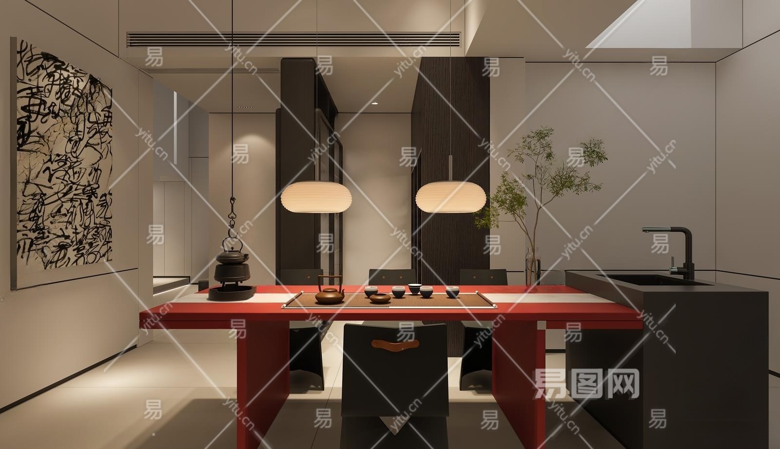现代地下室茶室3D模型下载