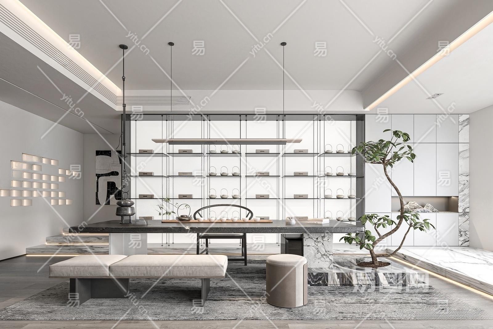 现代茶室3D模型下载