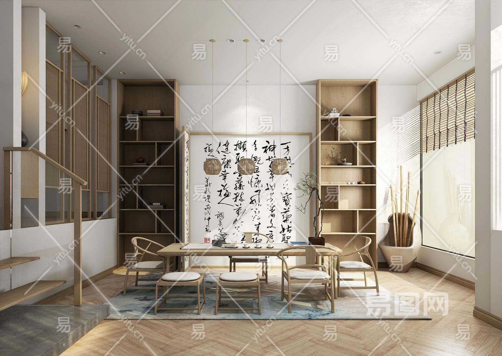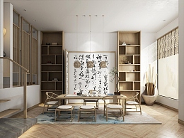 新中式茶室空间3D模型下载