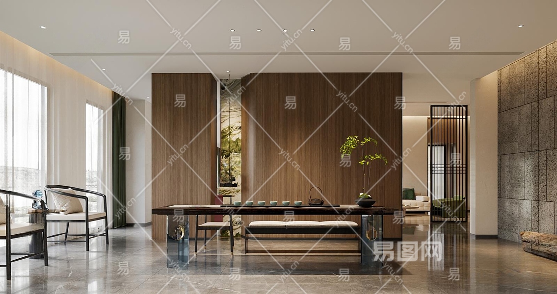 新中式茶室3D模型下载