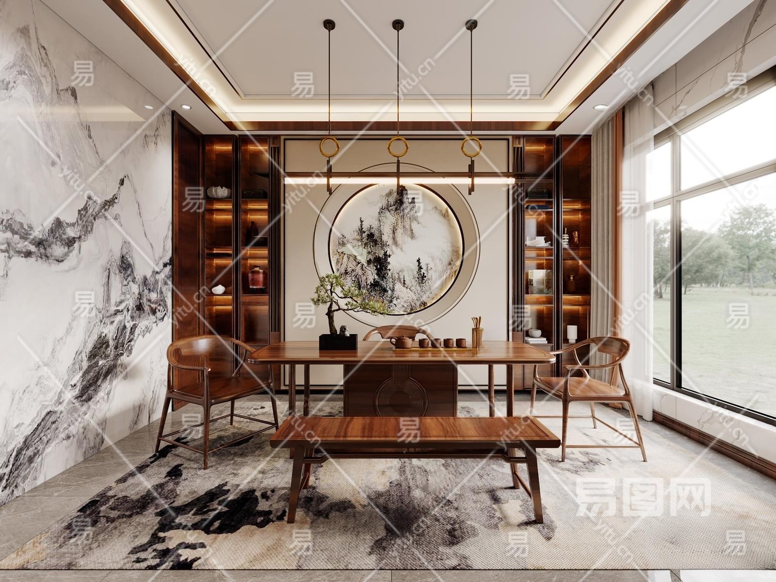 新中式茶室3D模型下载