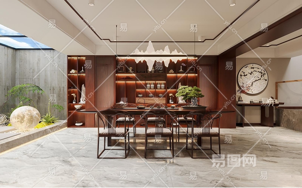 新中式茶室3D模型下载