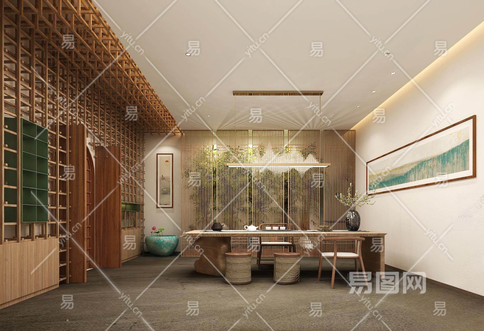 新中式茶室3D模型下载