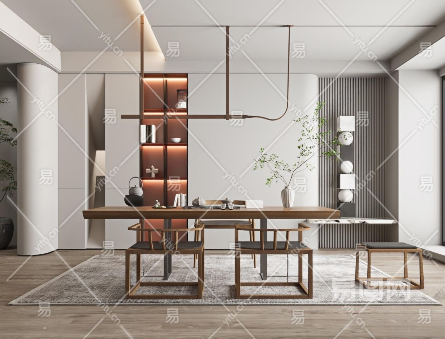新中式茶室3D模型下载