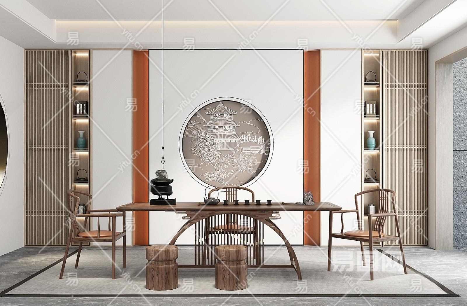 新中式茶室3D模型下载
