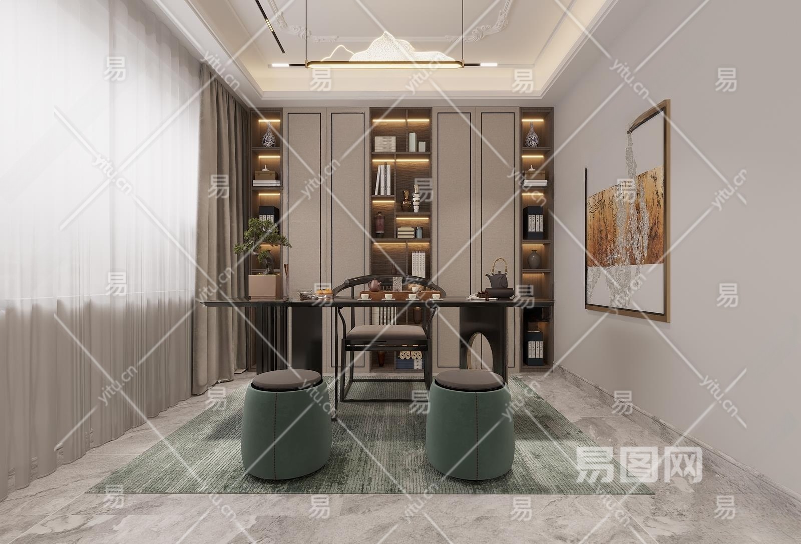 新中式茶室3D模型下载