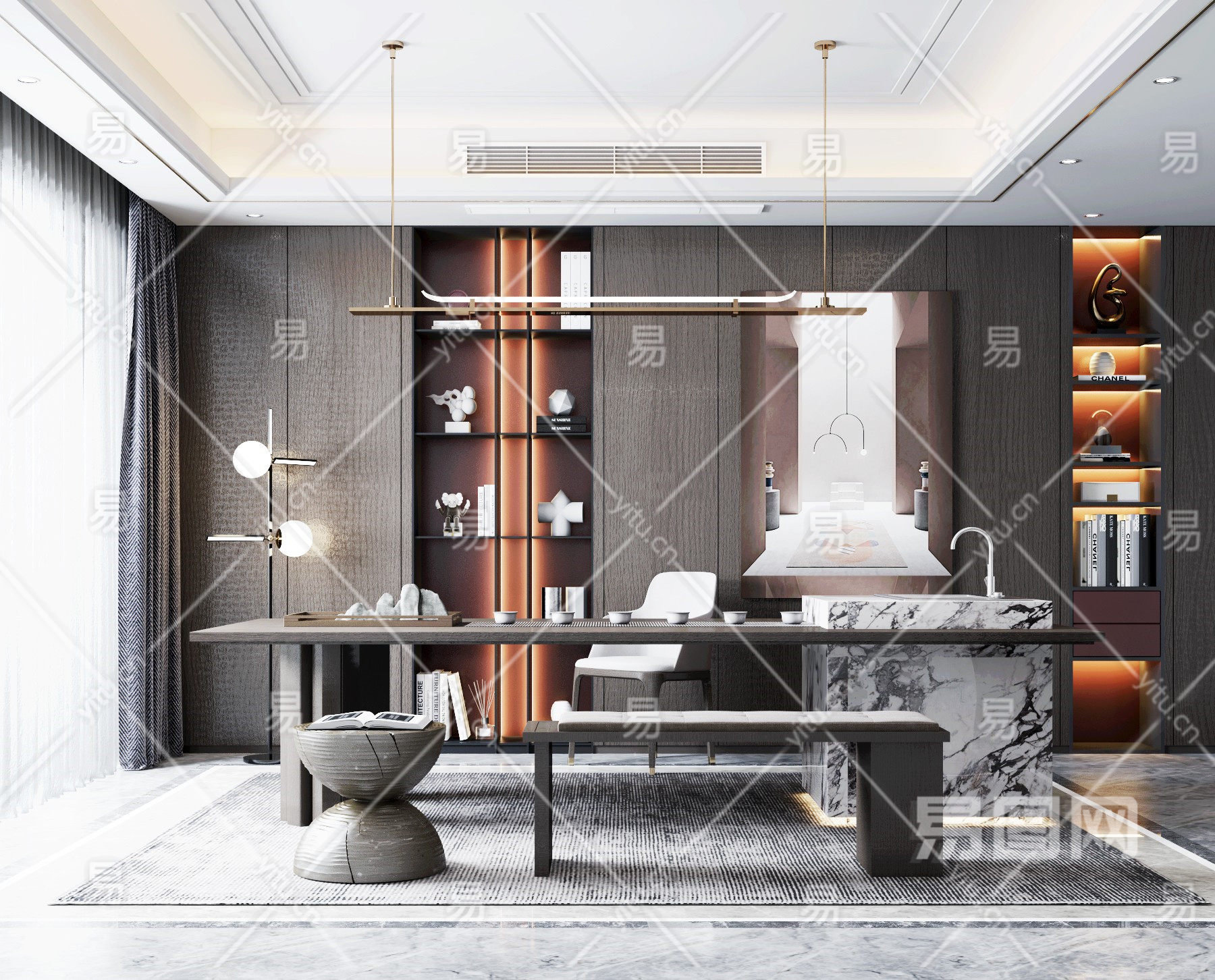 当前的位置:首页 > 3D模型 > 家装空间 > 茶室 > 现代茶室 茶桌椅组合 挂画 吊灯 摆件
