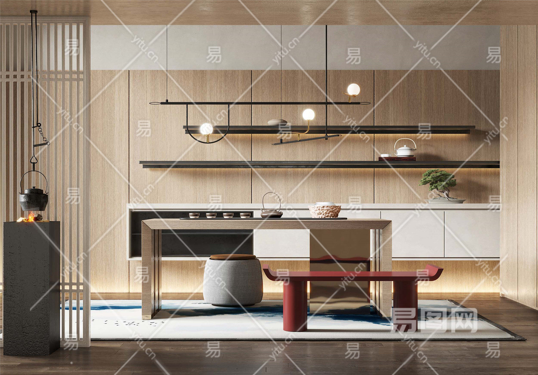 当前的位置:首页 > 3D模型 > 家装空间 > 茶室 > 新中式茶室 茶桌椅组合