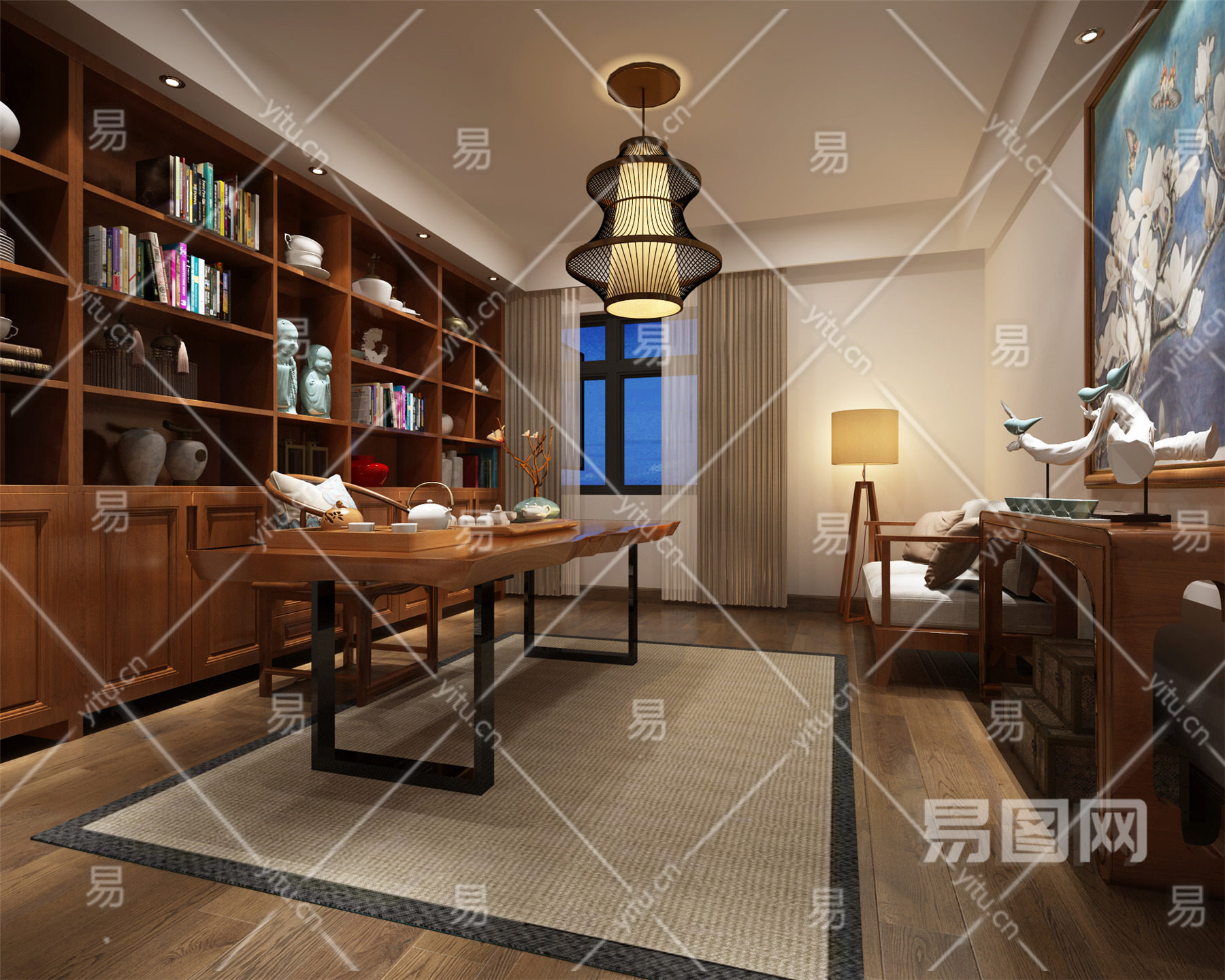 当前的位置:首页 > 3D模型 > 家装空间 > 茶室 > 新中式最新新中式书房