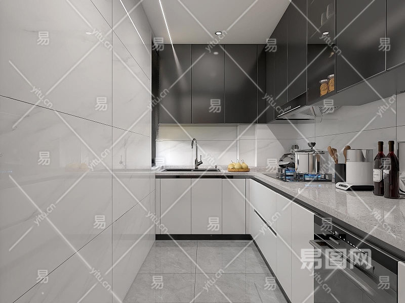 现代厨房3D模型下载