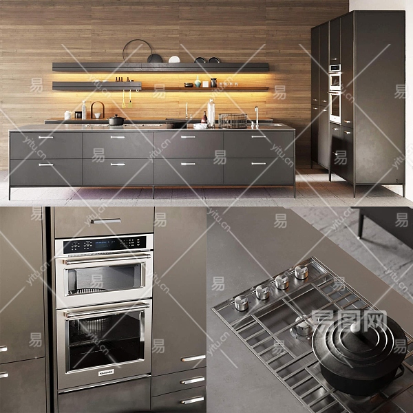 现代家居厨房3D模型下载
