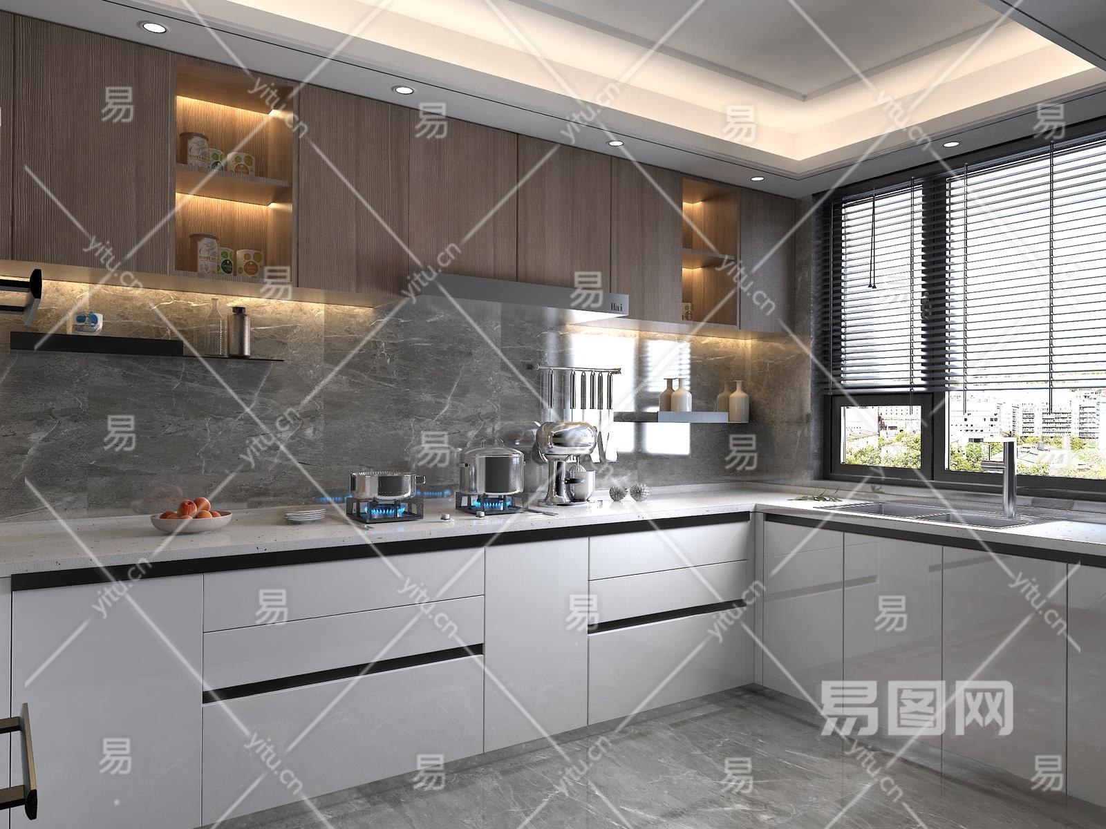 现代封闭式厨房3D模型下载