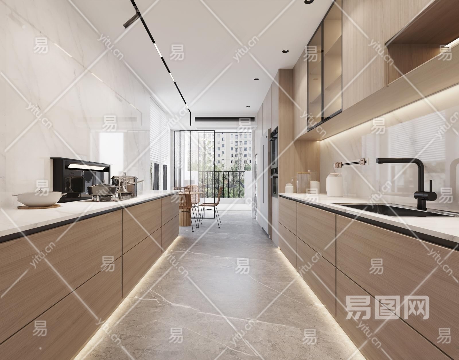现代原木极简厨房3D模型下载