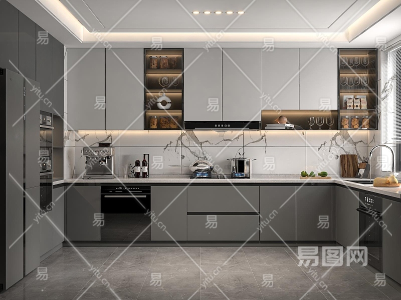 现代封闭式厨房3D模型下载