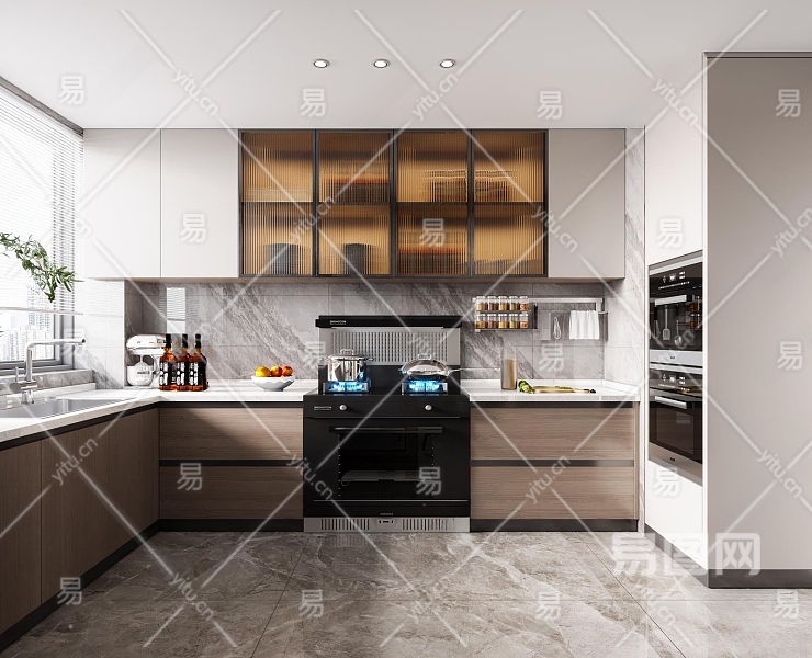 现代封闭式厨房3D模型下载