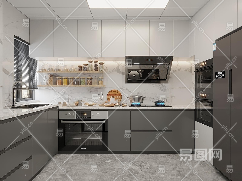 现代厨房3D模型下载