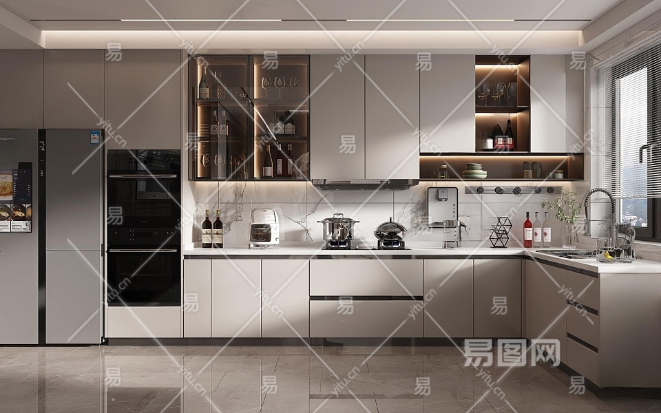 现代厨房3D模型下载