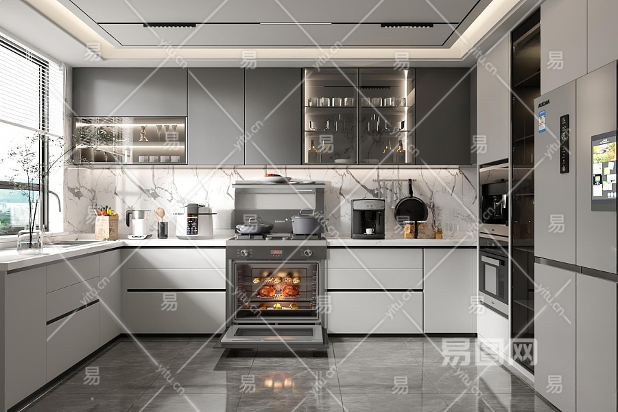 现代厨房3D模型下载