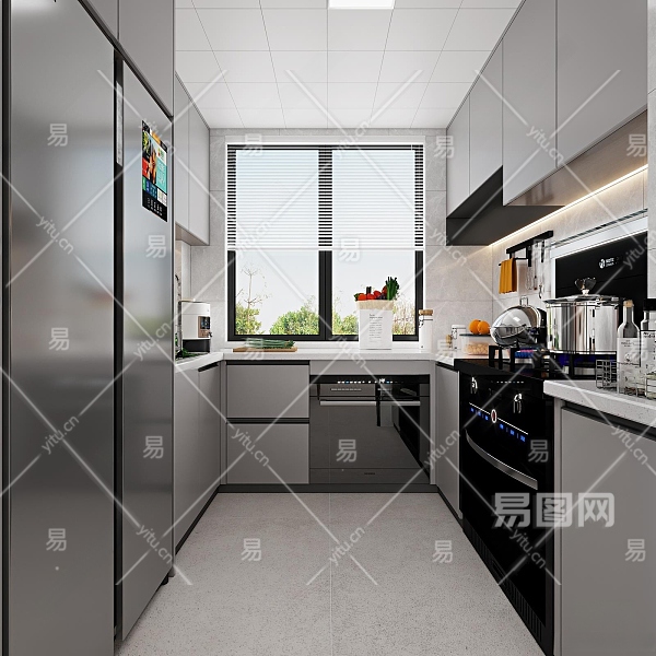 现代厨房3D模型下载