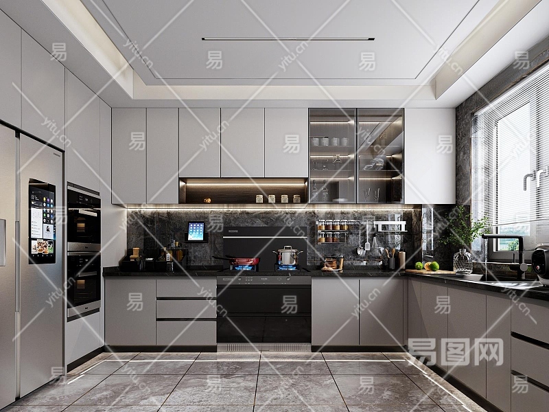 现代厨房3D模型下载