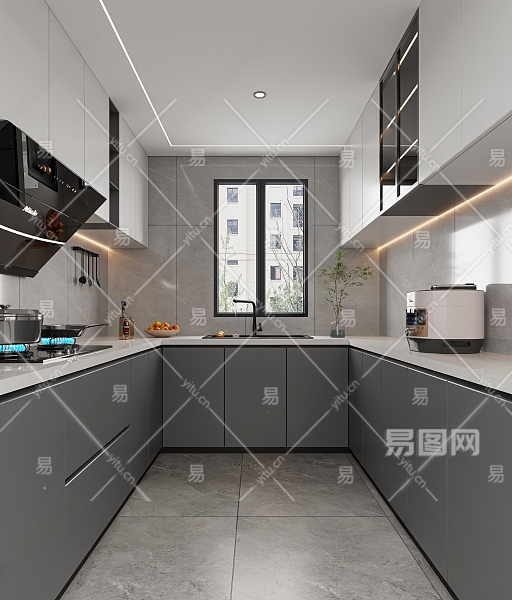 现代简约厨房3D模型下载