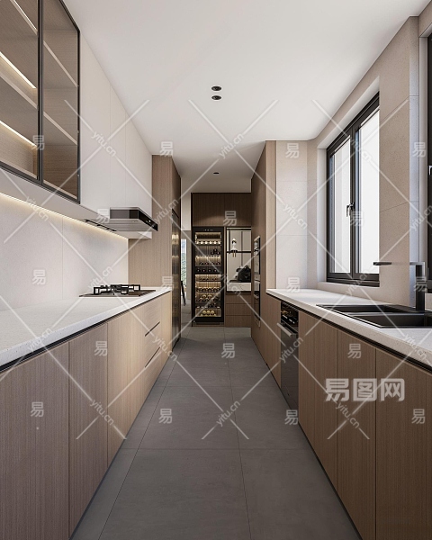 现代厨房3D模型下载