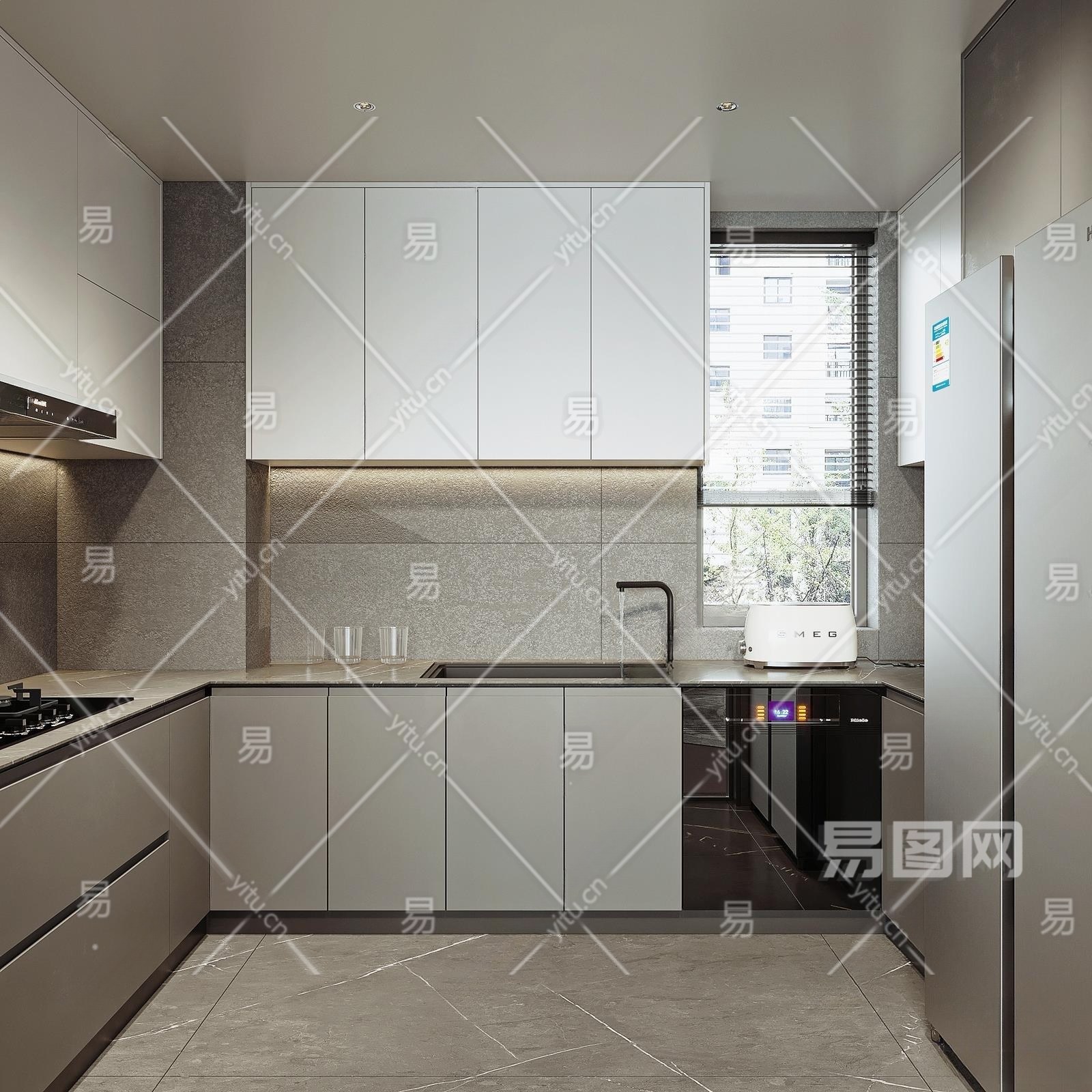 现代厨房3D模型下载