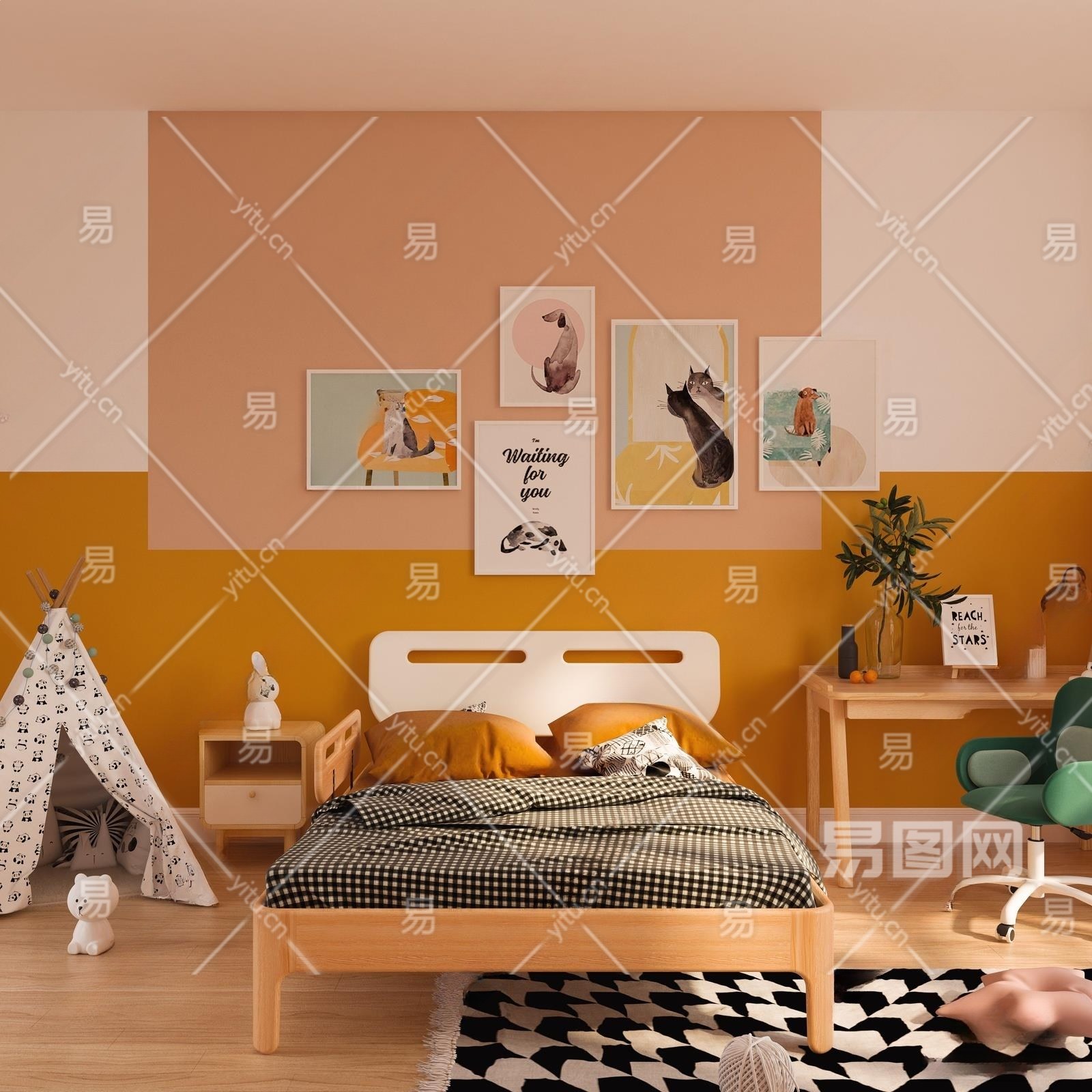 北欧风格儿童房3D模型下载
