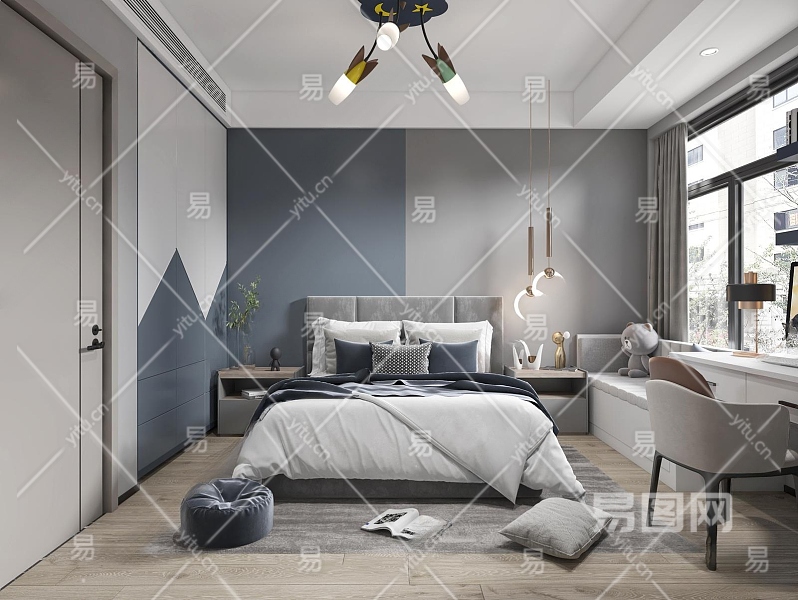 现代男孩儿童房3D模型下载