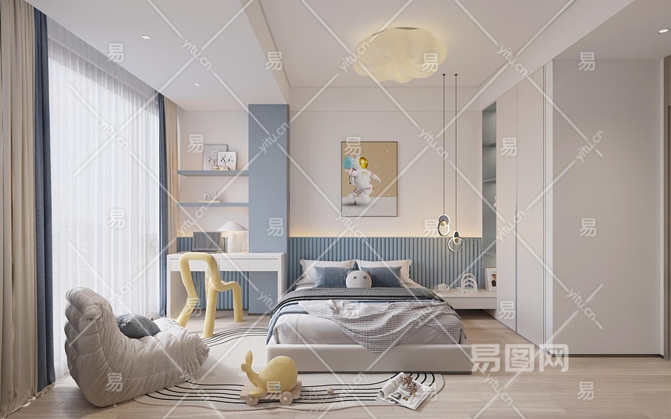 现代男孩儿童房3D模型下载