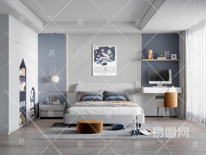 现代男孩儿童房3D模型下载