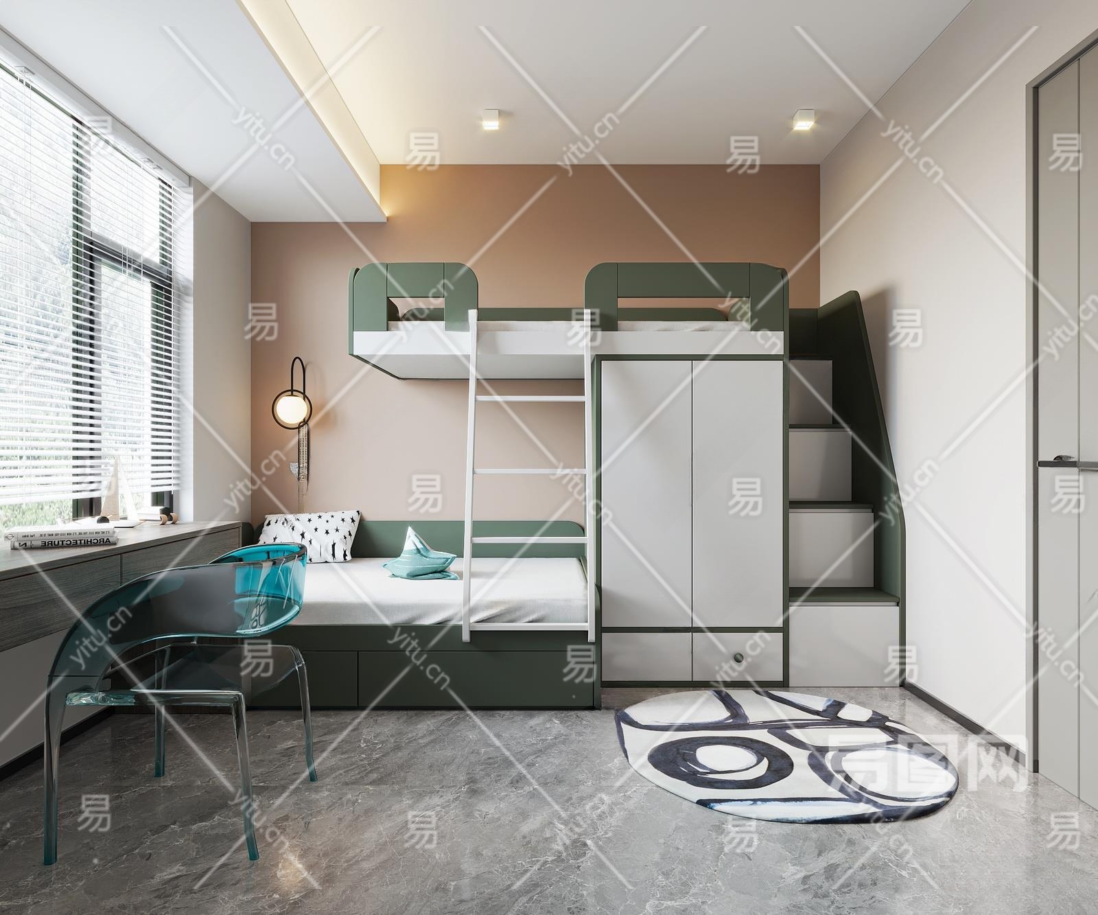 现代通用儿童房3D模型下载