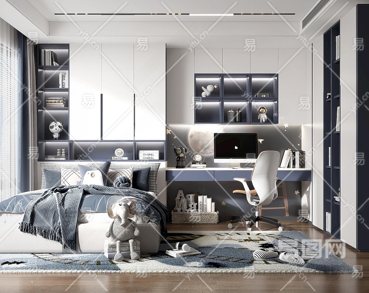 现代男孩儿童房3D模型下载