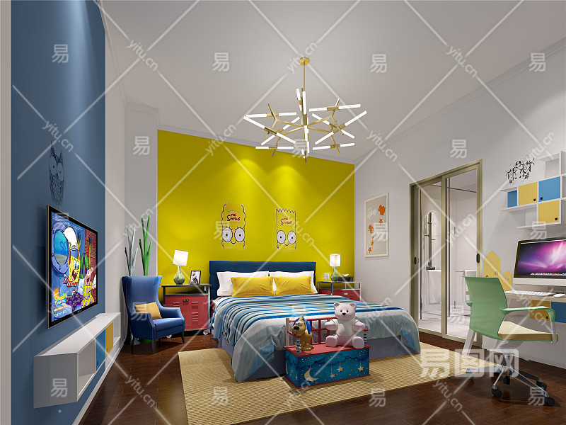 现代小孩房 玩具 双人床 单人床 床 床头柜 吊灯 壁灯-1