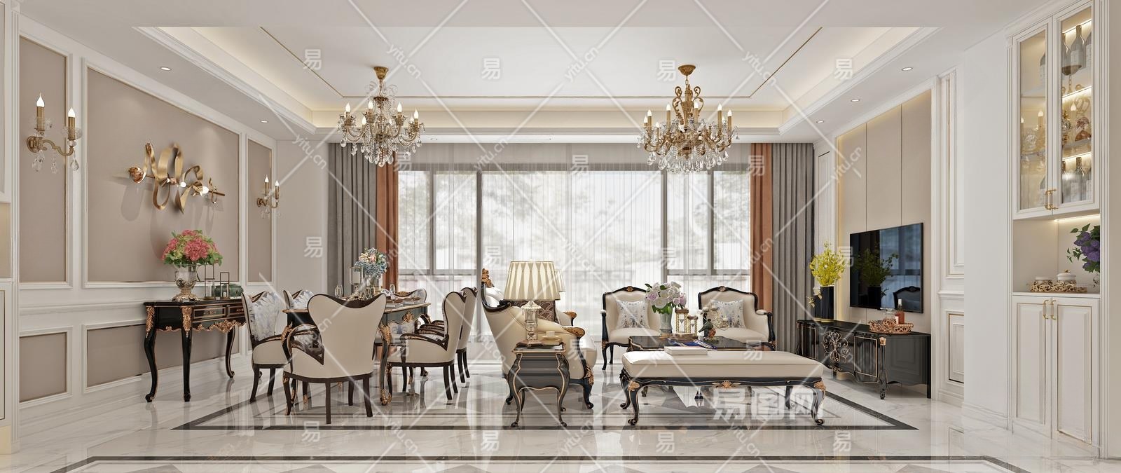 欧式古典客餐厅3D模型下载