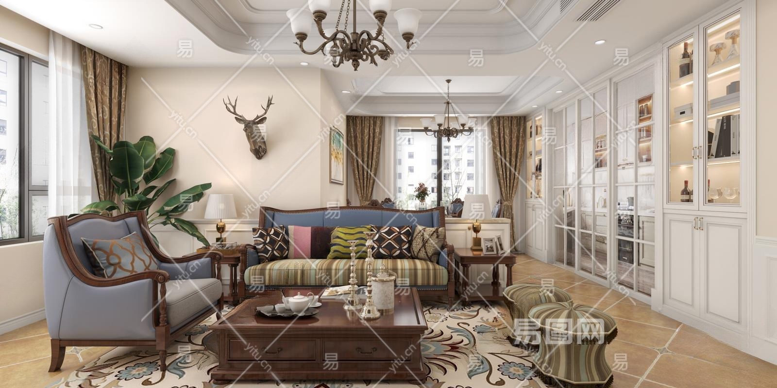 材质CR材质 贴图有贴图 灯光CR灯光 风格美式