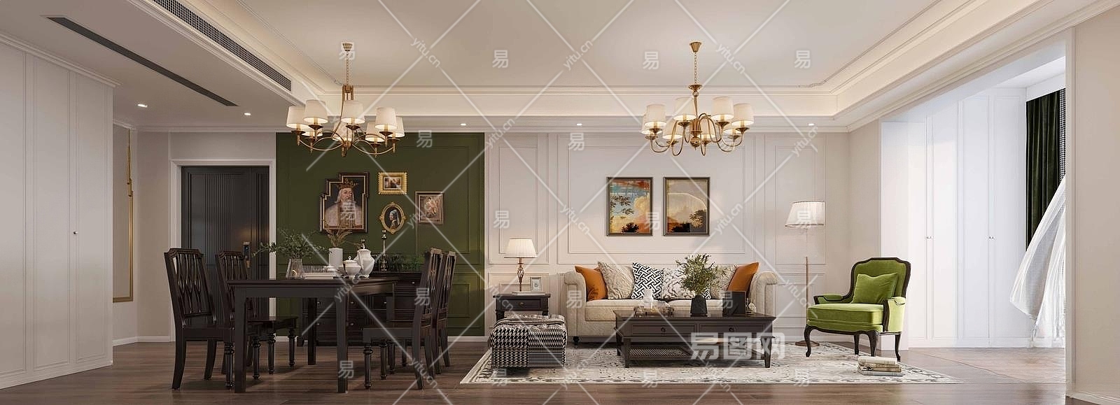 材质VR材质 贴图有贴图 灯光VR灯光 风格美式