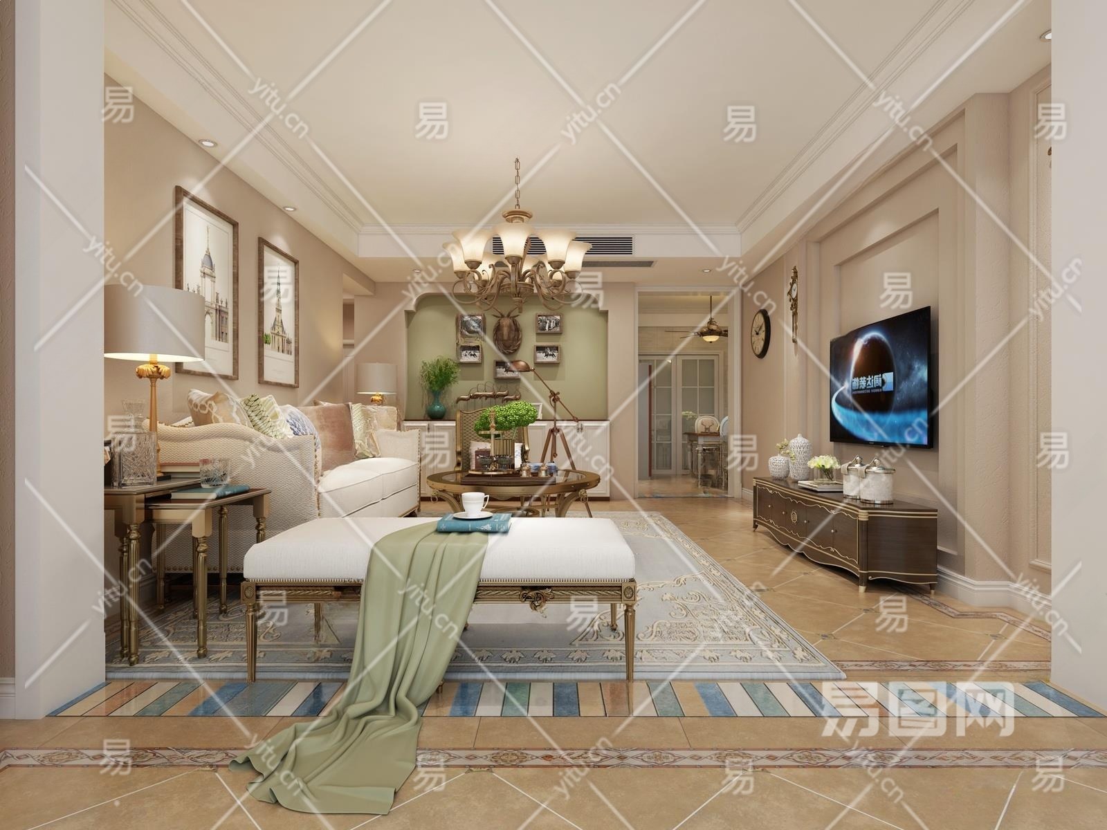材质VR材质 贴图有贴图 灯光VR灯光 风格美式