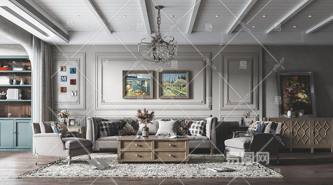 材质VR材质 贴图有贴图 灯光VR灯光 风格美式