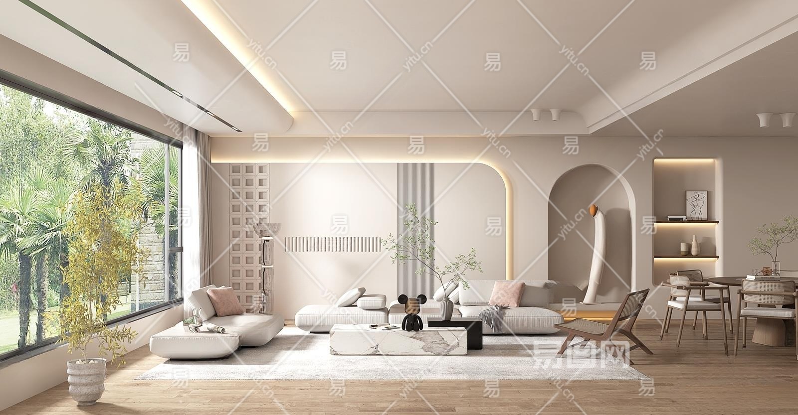 侘寂奶油风客餐厅3D模型下载