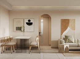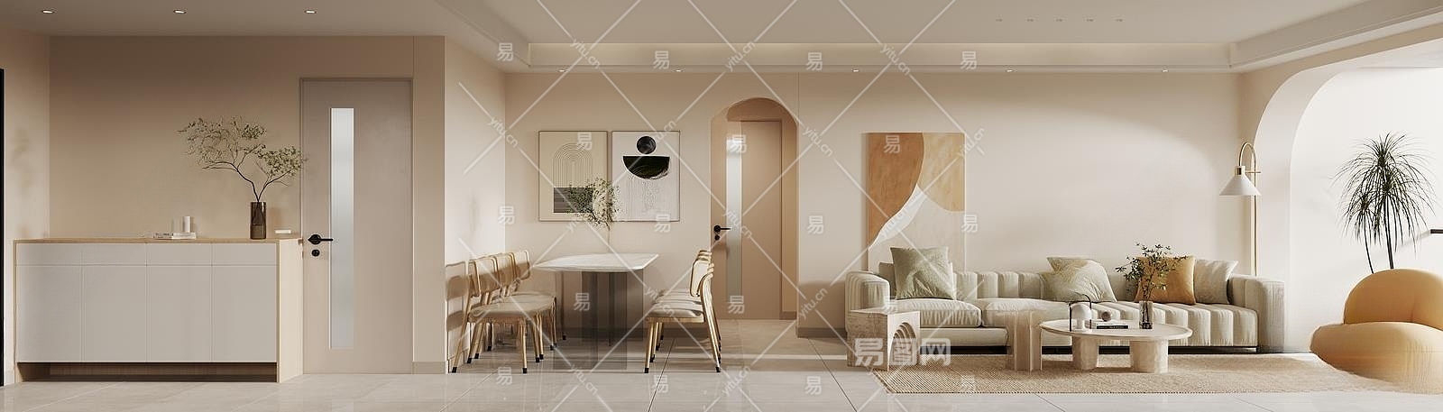 现代奶油风客餐厅3D模型下载